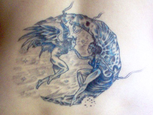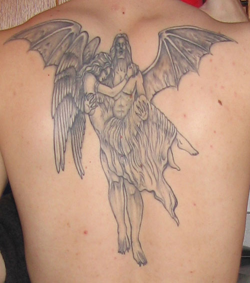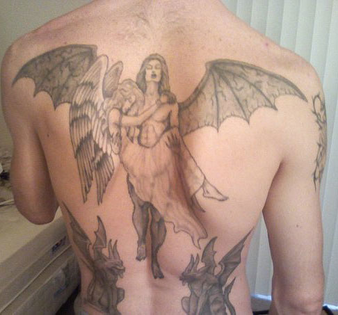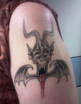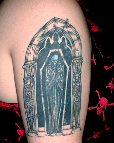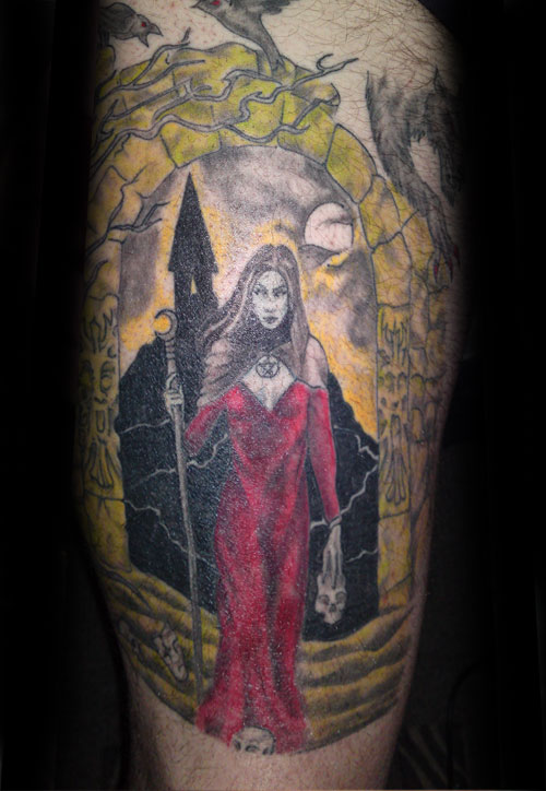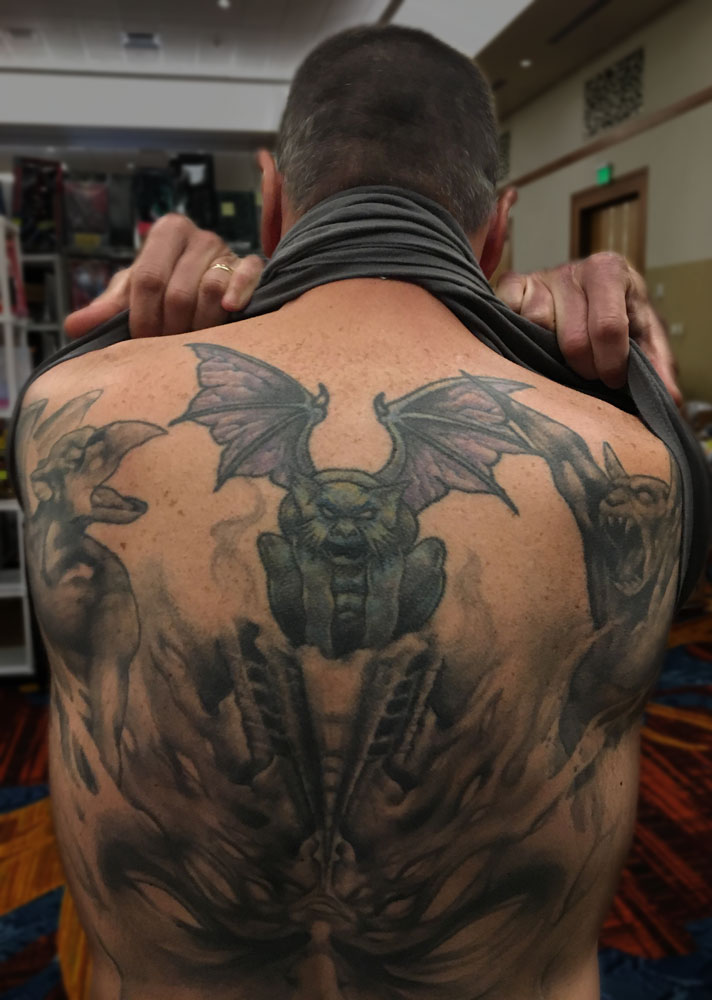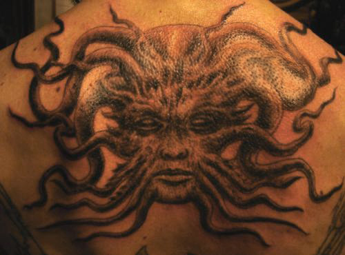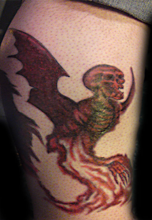 The following images are from people who have tattoos of our artwork. The titles below indicate the works from which these tattoos were derived. If you have a tattoo of Joseph Vargo's or Christine Filipak's artwork you'd like to share, or if you'd like permission to use our artwork for a personal tattoo, please contact Monolith Graphics. (Note to tattoo parlors, our artwork is not permitted to be sold as flash).Thanks to everyone for your letters and photos! Also, thanks to the tattoo artists for doing such a good job translating the artwork onto flesh.